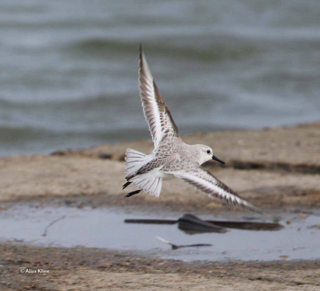 This is the view of sanderlings that should be sort f familiar. It is the look they give when they are flying away from you on the beach. I have lots of these photographs 🙁