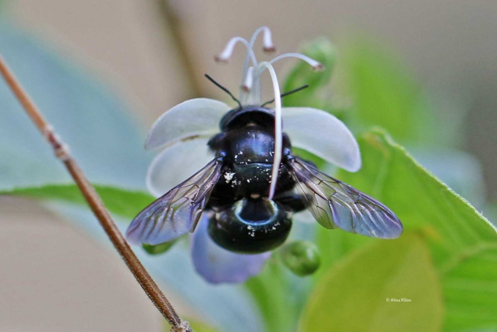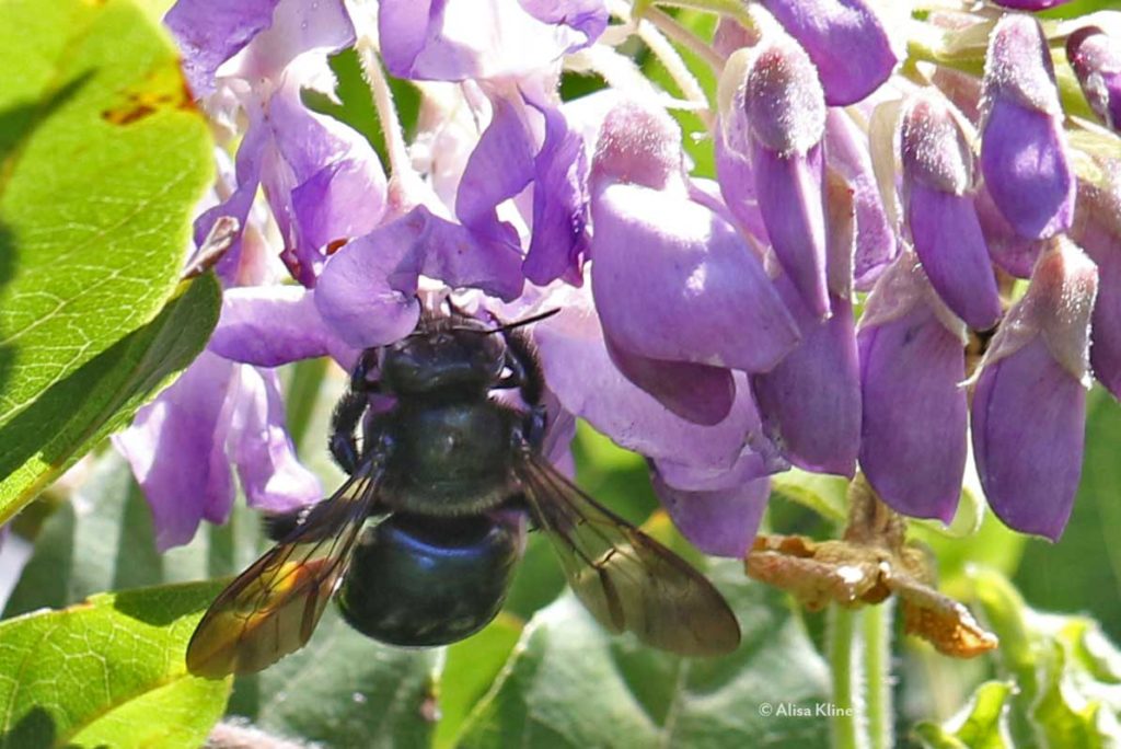 This carpenter bee is helping the wisteria (ahem) make whoopie.