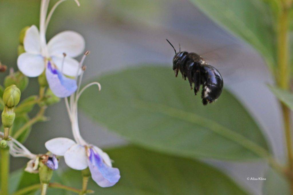 This female southern carpenter bee is approaching a cleradendrum flower. Her mouth parts are already extended. She’s ready to eat!