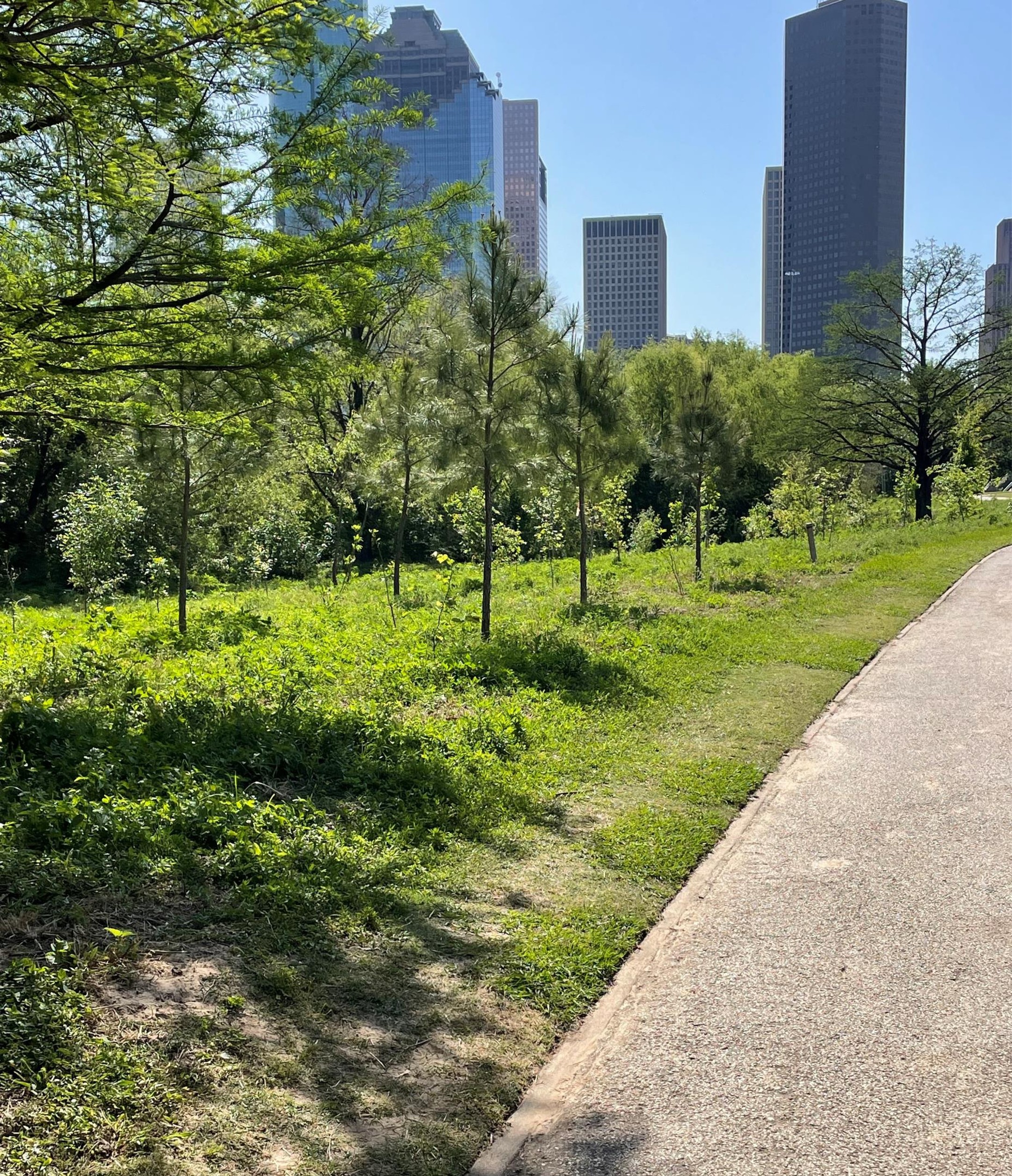 In 2024 and 2025, the maintenance and conservation teams completed multiple phases of a tree planting plan along Allen Parkway. The project so far has added over 400 new trees along the south bank trails from Shepherd Drive to Sabine Street. From Live Oaks and Loblolly Pines to Eastern Redbuds and Mexican Sycamores, the variety of species will ensure stable soils and a diverse ecology. Future phases of the planting plan are ongoing.