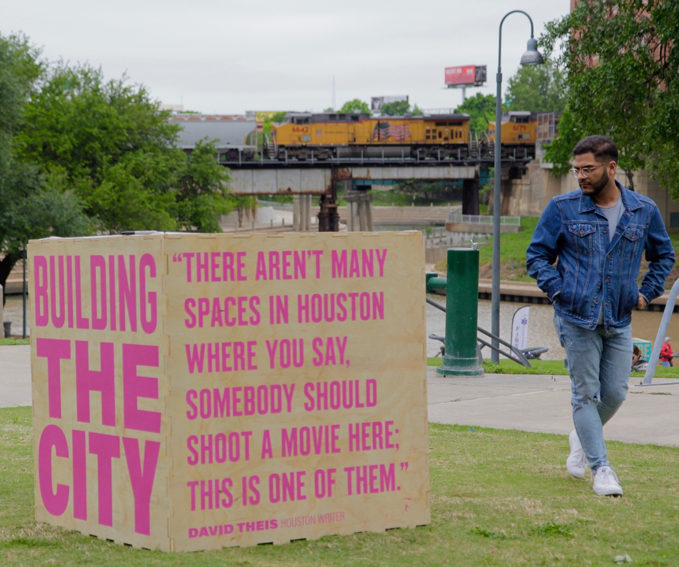 Encounter: Meeting Points on Buffalo Bayou (April 7, 2019) was a collaborative project with students from the University of Houston Graphic Design and Creative Writing Programs. This one-day event featured site-specific, text-based installations at six locations in Buffalo Bayou East. Using the sites as inspiration and vehicles for content, the students created large-scale typographic/text-based messages/stories that were activated and animated. The installations expressed interpretations of the history, economy, resilience, culture, and community values of the East Sector neighborhoods as they relate to the bayou and green spaces. Encounter won a 2019 SEGD Global Design Award in the Public Installation category.