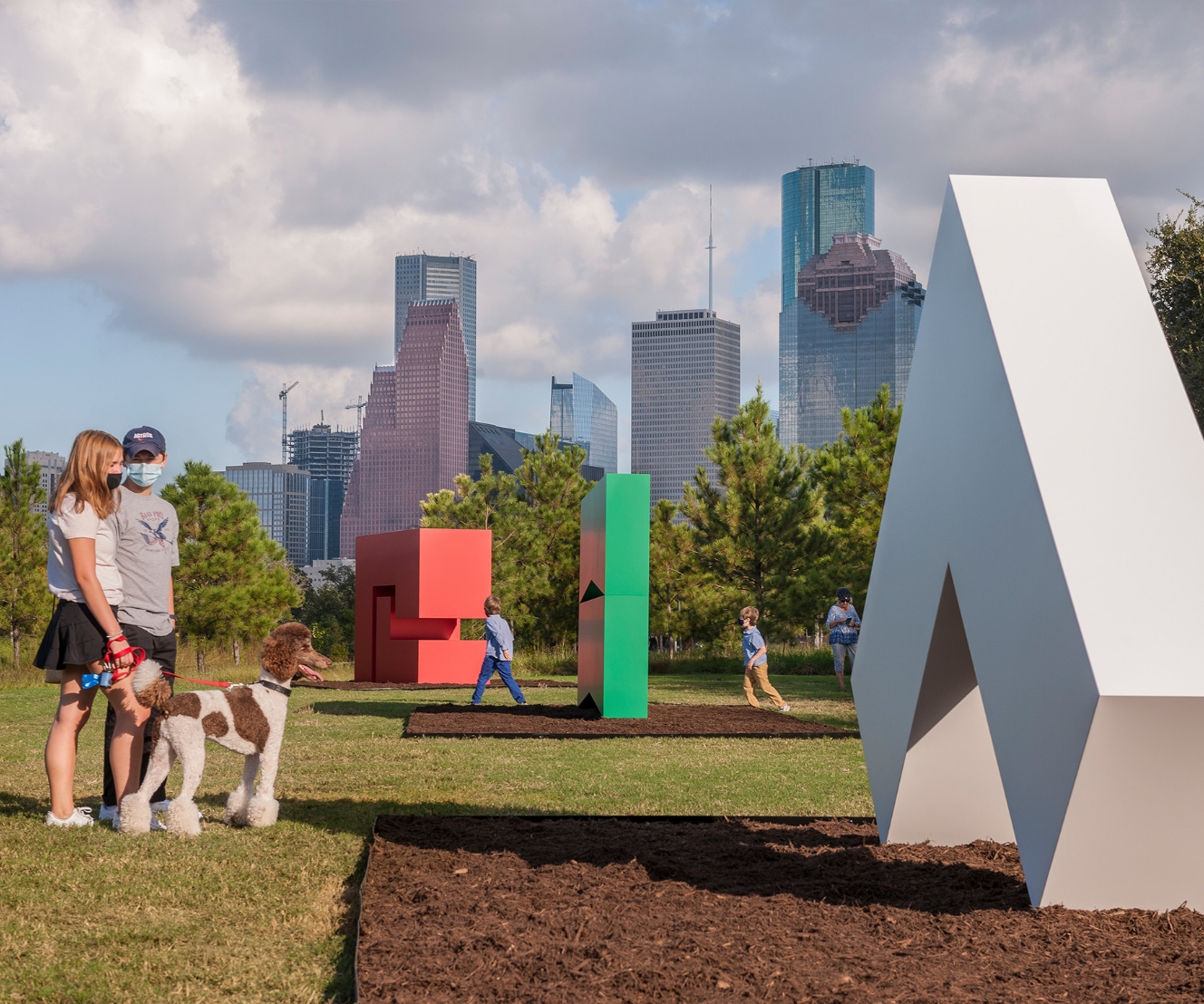 Estructuras Monumentales (October 22, 2020 to April 25, 2021) was an exhibition of larger-than-life outdoor sculptures by artist Carmen Herrera (1915-2021). On view in Buffalo Bayou Park during the height of the Covid-19 pandemic, the exhibition of colorful geometric artworks served as a bright spot in a wide-open public space for all to experience and enjoy.