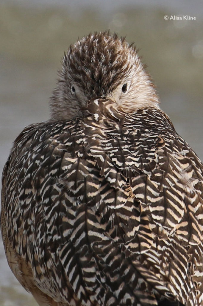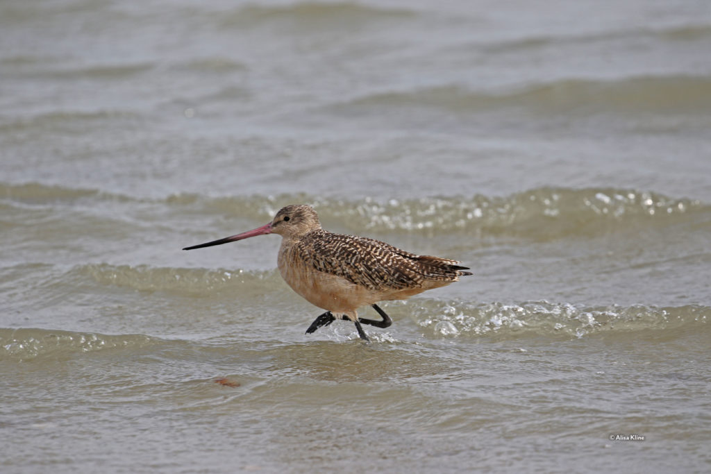 Ruddy turnstones are named because they are a ruddy color and they hunt by turning over stones and gobbling up whatever is underneath them. There are two turnstones, the other is the black turnstone and I’ll leave it to you to guess why. The black turnstone is limited in range to the Pacific coast of the U.S. The ruddy turnstone isn’t so confined. While not as common as sanderlings on our beaches, the turnstone joins the sanderling as being one of the most cosmopolitan birds in the world. On any sandy beach in the world, when it isn’t summer (breeding season) there are three birds you will likely run into: a sanderling, a turnstone, and a whimbrel. I didn’t run into a whimbrel in Galveston. I never run into a whimbrel. But I did see this wonderfully marbled godwit who decided to pose for me and I am eternally grateful.